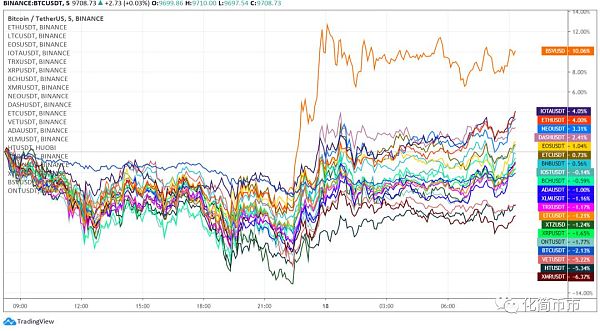 Las principales divisas experimentaron una fuerte corrección durante el día de ayer y luego se recuperaron fuertemente por la noche.Aunque más de la mitad de las divisas en el gráfico de calor todavía están en un estado de cierre en las primeras operaciones de ayer, BSV y ETH son divisas líderes fuertes. en el proceso de rebote de ayer por la noche, ahora ha recuperado todas las pérdidas diurnas de ayer y también ha logrado un rendimiento alcista considerable en las últimas 24 horas. BTC ha cerrado con una caída del 2,13% desde la mañana de ayer, y aún no se ha recuperado de manera efectiva después de que cayera la marca de los 10.000 enteros.