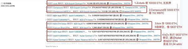 Conclusión: el hacker llama a través de múltiples contratos, y en una transacción en la cadena, con 0 depósitos, el grupo de préstamos de bZx pierde 51,34 BTC, obtiene un depósito equivalente a 180 000 dólares estadounidenses en Compound. bZx bloqueó la autoridad de administración y el pirata informático no pudo obtener una ganancia de 51,34 BTC.