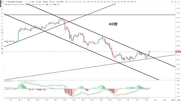En la línea diaria, el precio actual se ha mantenido en la línea de 5 días, girando la cabeza hacia arriba, y está a punto de cruzar la línea de 10 días, formando una tendencia alcista de corto plazo. En el gráfico técnico, el rebote más alto del precio golpeó la línea de tendencia descendente que llegó a $ 498 en el período anterior y retrocedió. El espacio a continuación también es limitado. El soporte inferior es la línea de tendencia ascendente anterior, que no se ha roto después de muchos retrocesos recientes. En la actualidad, el precio se ha roto a través del canal de tendencia bajista. El MACD diario tiene una tendencia de cruz dorada y mantiene un gran volumen. Se espera que amplíe aún más el margen de rebote. La presión es de 365 dólares estadounidenses.