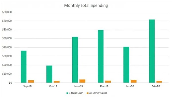 Como parte de su encuesta mensual periódica, el último informe Gasto en criptomonedas en empresas minoristas de Bitcoinbch.com destaca la importancia de la adopción comercial para cualquier criptomoneda que aspire a convertirse en el sistema de efectivo electrónico global. La investigación examina el gasto de Bitcoin Cash (BCH) y otras criptomonedas importantes en comerciantes físicos en Australia. Los datos más recientes muestran que las transacciones totales de criptomonedas aumentaron en febrero de 2020 a $73 769,41, frente a los $44 087,57 de enero. El uso de Bitcoin Cash alcanzó un récord del 97,01% de todas las transacciones comerciales cubiertas por el estudio el mes pasado, frente al 90% en octubre y el 93% en noviembre. BCH representa más de $71,500 del gasto mensual total.