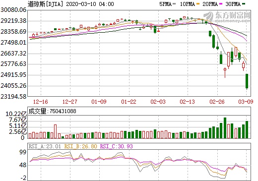 A las 9:30 a. m., hora del este, del 9 de marzo, solo cinco minutos después, los tres principales índices bursátiles Dow Jones, S&P 500 y Nasdaq cayeron un 7%, lo que activó un mecanismo de disyuntor de primer nivel: un disyuntor significa que todo el mercado debe cerrarse. Las operaciones solo pueden continuar después de 15 minutos: después de la apertura del mercado, los tres índices principales continuaron cayendo y, en el punto más profundo del día, cayeron más del 8%.