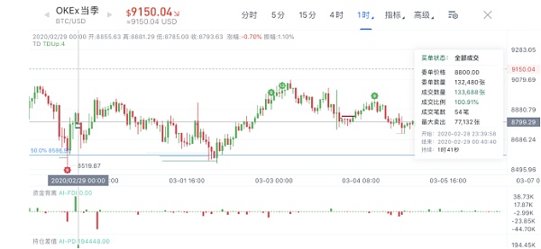 La semana pasada, Bitcoin tocó fondo y se recuperó, y el precio de la moneda aumentó desde el contrato trimestral de OKEx (sitio web oficial: www.okex.me) de $ 8600 a más de $ 9100. En los últimos tres días de negociación de la semana pasada, Bitcoin continuó cerrando debido al pánico en el mercado financiero internacional, pero la línea de cierre del doji el domingo hizo que el precio de la moneda se estabilizara. Luego comenzó a repuntar junto con las acciones de EE. UU. el lunes, cerrando un 4,25% ese día y rompiendo la resistencia del promedio móvil de 200 días de un solo golpe. En la noche del martes 3 de marzo, afectado por el recorte de tasas de interés de emergencia de la Reserva Federal, Bitcoin volvió a reaccionar exactamente como el mercado de valores de EE. UU., es decir, subió rápidamente después del anuncio de la resolución, y luego comenzó a caer debido a sentimiento inestable del mercado. Sin embargo, Bitcoin comenzó un nuevo repunte el jueves por la mañana y superó la marca de $ 9,000, un 3,74% más en el día. Actualmente, la parte superior está sujeta a la resistencia del promedio móvil de 60 días cerca de $9350.
