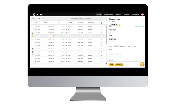 Funcionalmente, la mayoría de los proyectos basados en Ethereum se benefician al agregar una billetera o una dirección de transacción a Gilded, porque luego puede ver toda la actividad de la cuenta y categorizar las transacciones según sus necesidades, como: ingresos, tarifas, comercio o transferencia.