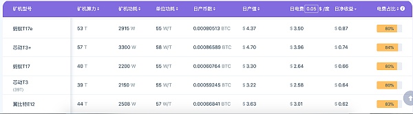 A juzgar por la lista de clasificación de los ingresos de las máquinas de minería proporcionada por el sitio web oficial de F2Pool, a 0,35 yuanes por kilovatio-hora, muchas máquinas de minería han alcanzado el precio de cierre. Por ejemplo, el Shenji Ant S9, que ocupa el 40 % de la potencia informática de toda la red, ha entrado en el precio de cierre en todos los ámbitos. Además, las series Antminer T17, Whatsminer M20 e Innosilicon T3 representaron casi el 90% de la factura de electricidad.