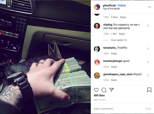 De hecho, a Boiko parece gustarle mucho la foto de él sosteniendo una gran suma de dinero en efectivo. El documento cita las siguientes fotos, publicadas en su Instagram el 13 de mayo de 2017 y el 24 de marzo de 2016, respectivamente, y aún visibles en el momento de la publicación: