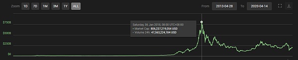 En diciembre de 2017, el valor de mercado total de las criptomonedas alcanzó los 800 mil millones de dólares estadounidenses y, desde entonces, ha comenzado un mercado bajista de dos años.