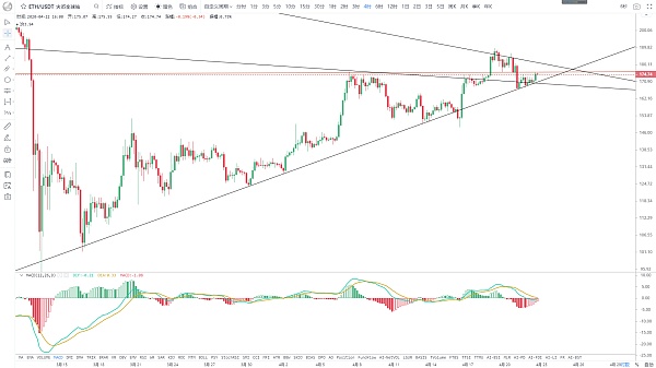 En la actualidad, ETH es relativamente fuerte, y los ajustes recientes en la forma no han roto la línea de tendencia alcista en la que se ha estado confiando. Después de ganar impulso a lo largo de la línea de tendencia, se recuperó ligeramente hoy. La posición corta MACD de 4 horas se acortó gradualmente a El eje 0, y las líneas rápida y lenta también tienen La tendencia de la cruz dorada muestra signos de fortaleza continua en el corto plazo. La supresión superior actual a corto plazo está cerca de la línea de tendencia semanal 176. Una vez que se rompa esta posición, se espera que para continuar probando el punto de supresión de la línea bajista diaria 182. El conjunto todavía está al final del gran triángulo. Espere En el período posterior, el mercado cambió de dirección y se abrió paso, apoyando 171.