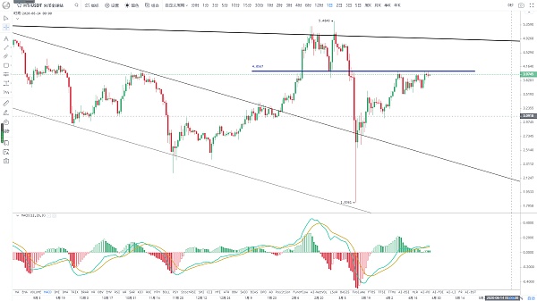 El precio está por encima de los promedios móviles a corto plazo y a corto plazo, y el corto plazo sigue siendo una postura fuerte. La resistencia clave anterior es de 4,05 dólares estadounidenses. Una vez que esta posición sea pesada, el espacio de seguimiento continuará expandiéndose. La próxima resistencia fuerte está en 4.44. En la actualidad, aún no es fuerte. Continúe esperando y viendo a corto plazo, una vez que se rompa, la estructura de doble suelo diario, el precio seguirá aumentando. Soporte $ 3.8.