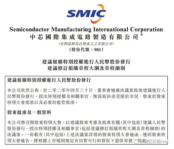 En la noche del 5 de mayo, SMIC emitió un anuncio que indica que la empresa solicitará a la Bolsa de Valores de Shanghái la aprobación de la cotización y negociación de acciones en RMB en la Junta de Innovación Cientí.