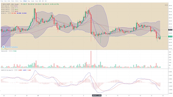 BCH: BCH es principalmente venta en corto, el punto de límite de pérdidas se mueve hacia abajo a $ 240 y el punto de límite de ganancias es de $ 210.