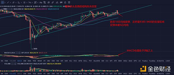 Después de rebotar desde el promedio móvil de 10 días, el mercado ahora está cerca del promedio móvil de 5 días. En el día, prestaremos atención a si puede rebotar por encima del promedio móvil de 5 días. El punto específico de presión es todavía en $ 9,800, y el soporte más bajo es de $ 9,300.