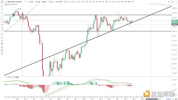El contrato de futuros de CME formó una brecha durante el fin de semana. Existe una necesidad a corto plazo para cubrirla. Junto con la caída continua, el indicador horario está seriamente sobrevendido. También hay una demanda de retiro y reparación en el futuro cercano. El precio más bajo ayer tocó 8910 dólares estadounidenses, cerca del promedio móvil de 60 días. El soporte subió rápidamente, una vez subió a cerca de 9600 dólares estadounidenses y luego retrocedió levemente. La línea diaria está debajo de la estructura de agujas, y el fondo los fondos de caza obviamente están involucrados. Hoy, el rebote se mantiene. En la actualidad, el precio ha regresado al rango del triángulo ascendente que cayó por debajo del período anterior, y al mismo tiempo se reanudó parando nuevamente por encima del promedio móvil de 30 días y el 5 promedio móvil diario, la línea rápida MACD que divergió hacia abajo en la etapa inicial se aplanó gradualmente, y la tendencia general mostró signos de estabilización, estabilización y fortaleza nuevamente.