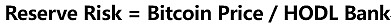 Los activos mantenidos con diferentes períodos se definen como HODL Bank Creemos que el riesgo de reserva es inversamente proporcional a HODL Bank y directamente proporcional al precio de la moneda. Es decir, cuantas más monedas acumule, menor será el riesgo de reserva; cuanto mayor sea el precio de la moneda, mayor será el riesgo de reserva. La fórmula es la siguiente: