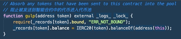 La función gulp() del contrato Balancer se usa para sobrescribir el valor de registro interno de un determinado token en el número real actual del token, pero está configurado incorrectamente en una función externa sin límite. La función gulp() no debe ser externa, ni debe agregar restricciones de verificación o protección para usuarios específicos o propietarios de contratos inteligentes.