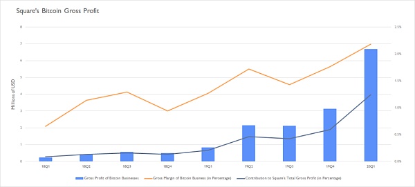 Tenga en cuenta que los ingresos de Bitcoin de Square se calculan por el valor total de las transacciones. El ingreso real es la utilidad bruta, que fue de aproximadamente $6.7 millones en el 1T20.