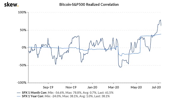 "La correlación de moderada a alta entre las acciones y Bitcoin en los últimos meses ha sido un buen ejemplo del creciente interés institucional. Las grandes empresas comerciales tienden a impulsar los activos en la dirección de una correlación positiva o negativa, ya que eso es lo que hemos visto recientemente entre Bitcoin y acciones En el pasado, Bitcoin se ha desempeñado tan poco correlacionado que casi sugiere una desconexión total de los mercados financieros tradicionales”.