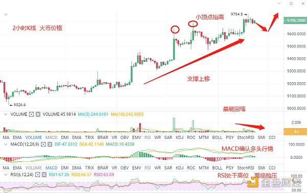 La Reserva Federal de EE. UU. define a BTC como una moneda, lo que crea un doble efecto positivo de punto caliente + CZ, que desempeña un papel de apoyo en las perspectivas del mercado. El precio de BTC sigue aumentando a lo largo de la línea de 7 días, entrando en un mercado alcista. Con la reducción del volumen y el precio, el precio de la moneda debe retroceder. El escote largo, mientras se mantenga firme en $ 9,638, continuará aumentando y fortaleciéndose. La línea horaria se ha insertado varias veces, lo que indica que ha entrado en una tendencia volátil en un corto período de tiempo. En términos de operación, puede reducir posiciones y obtener ganancias. Espere y vea el avance de seguimiento. Nivel de resistencia: 9827 , nivel de soporte: 9638.