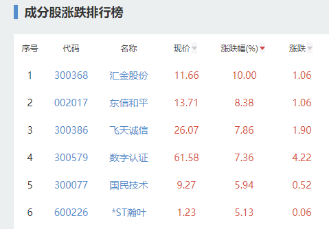 Desde la perspectiva de las acciones individuales, el límite diario de las acciones de Huijin, Dongxin Peace, Feitian Integrity, Digital Certification y otras acciones aumentó más del 6 %.