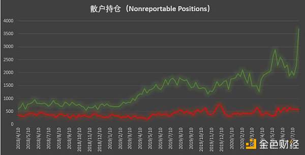 En cuanto a las posiciones de los inversores minoristas, las posiciones largas aumentaron considerablemente de 2277 a 3685, mientras que las posiciones cortas cayeron ligeramente de 577 a 552. Los inversores minoristas siguen siendo el tipo de modo de pensar más simple y crudo del mercado. En el contexto de la fuerte subida del mercado, este tipo de cuenta ha llevado a cabo un claro ajuste neto de posición larga, y la posición larga de los inversores minoristas ha también alcanzó un récord tras el final del último ciclo estadístico.nuevos máximos.