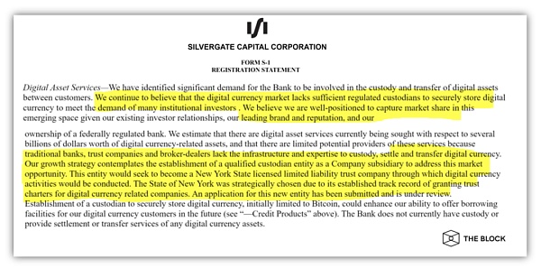Con la carta abierta de la OCC que permite a las instituciones cubiertas ofrecer soluciones de custodia de criptomonedas a los clientes, "incluida la tenencia de claves de cifrado separadas asociadas con las criptomonedas", una pregunta sobre Silvergate es si la carta ha cambiado a la espera del progreso del estado de Nueva York en el permiso de confianza.