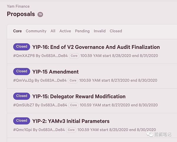 El tema principal de la propuesta de la comunidad YAM es el lanzamiento de YAM V3. A partir de las 23:59 UTC del 31 de agosto, finalizó el período de gobierno temporal de YAM V2. Todas las propuestas que aprueben resoluciones se implementarán en YAM V3. Para iniciar la gobernabilidad, el equipo de YAM primero propuso dos propuestas, involucrando el mecanismo de propuesta del proceso de gobernabilidad y los parámetros iniciales de YAM V3. Ambas propuestas fueron aprobadas:
