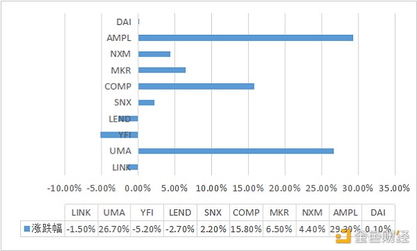 1. El valor de mercado total de DeFi: 17,965 mil millones de dólares estadounidenses El ascenso y la caída de las diez principales monedas por capitalización de mercado, Jinse Finance Chart.
