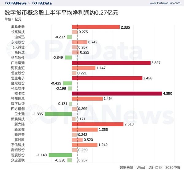 Desde la perspectiva de la ganancia neta, la ganancia neta mediana de las 27 empresas de concepto de moneda digital en la primera mitad del año fue de aproximadamente 27 millones de yuanes, que fue más alta que la ganancia neta promedio de las acciones de concepto de cadena de bloques en el primer trimestre de 11 millones. yuan. Entre ellas, 19 empresas lograron rentabilidad y Lakala tuvo la mayor ganancia neta, alcanzando alrededor de 439 millones de yuanes, seguida por Guangdian Express y Hang Seng Electronics, con ganancias netas superiores a 300 millones de yuanes.