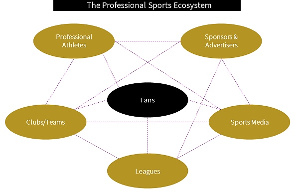 El "deporte profesional" no es solo clubes deportivos y atletas en sentido puro, sino también un ecosistema completo lleno de múltiples roles, incluidos clubes deportivos, atletas, fanáticos, ligas, medios deportivos, patrocinadores y anunciantes. Todos estos personajes tienen sus propios objetivos e intereses, pero a veces estos intereses suelen estar en desacuerdo entre sí. En esta ecología, los participantes a veces cooperan ya veces compiten.