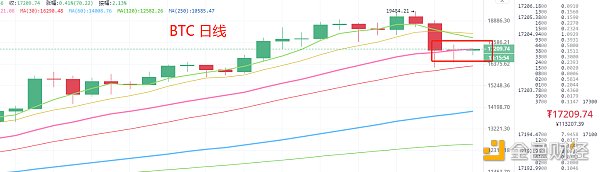 El nivel de soporte a corto plazo de BTC es 16800-17000, y el nivel de presión a corto plazo es 17600-17800.