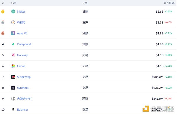 Según los datos de OKLink, a partir de las 18:00 horas de hoy, el volumen total de bloqueo de los protocolos DeFi en Ethereum es de unos 17.800 millones de dólares estadounidenses. Entre ellos, los cinco principales protocolos con posiciones bloqueadas son Maker 2640 millones de USD (+0,67 %), WBTC 2290 millones de USD (+0,15 %), AAVE 1730 millones de USD (+0,41 %), Uniswap V2 1690 millones de USD (+1,19 %). ) y Compuesto $1.670 millones (+1,74%).
