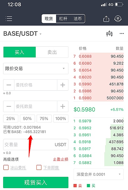 Compró la moneda base en la plataforma de la puerta, suponiendo que compró 1000BASE antes de las 6:00 a. m. del 11 de diciembre, el precio unitario es de 0,5 dólares estadounidenses y gastó 500 USDT.