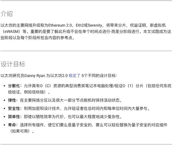 De acuerdo con el plan de la comunidad, Ethereum 2.0 no es una actualización y un parche de la versión 1.0 actual, sino un nuevo sistema de red bajo una revisión y un rediseño integrales, que traerá la implementación de tecnología de fragmentación, prueba de derechos e intereses, y un nuevo máquina virtual (eWASM), etc. Variedad.