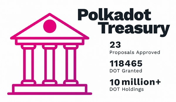 La tesorería de Polkadot apoya el desarrollo de la red y la comunidad. En 2020, 23 propuestas recibieron fondos de tesorería y se recibieron un total acumulado de 118456.63 DOT. A fines de 2020, la tesorería de Polkadot tenía alrededor de 10205300 DOT.