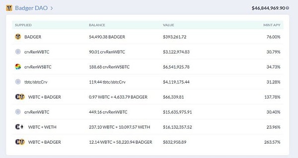 Otro proyecto al que 0xb1 presta mucha atención es el recientemente popular Badger DAO, cuyo objetivo es ayudar a los titulares de Bitcoin a utilizar sus tenencias de BTC de manera más eficiente para obtener ganancias. Según las estadísticas, esta dirección ha invertido alrededor de $ 47 millones en varias formas de grupos BTC en cadena respaldados por Badger DAO. 0xB1 ha afirmado que el token BADGER nunca caerá por debajo de $3 en 2021.
