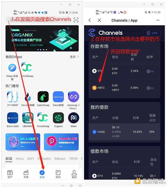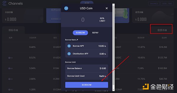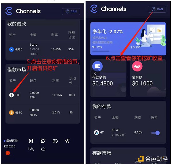 De acuerdo con la flecha roja, tome HUSDT como ejemplo, haga clic en el lado derecho de la columna HUSDT y preste los tokens correspondientes después de la autorización para comenzar a minar
