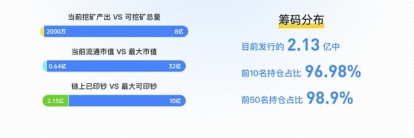La cantidad total que se puede extraer es de 800 millones y actualmente se producen 20 millones de tokens. Según la circulación actual, el valor de mercado actual de la circulación es de 64 millones de dólares estadounidenses y el valor máximo de mercado ya es de 3,2 mil millones de dólares estadounidenses. También encontramos que la circulación máxima de MDX es de mil millones, pero actualmente solo se imprimen 213 millones en la cadena. Entre los billetes impresos, las 10 primeras posiciones representaron el 96,98 % del total y las 100 primeras posiciones representaron el 98,9 % del total. Se puede ver a partir de los datos que las fichas de negociación de MDX están muy concentradas y tienen factores explosivos anormales.