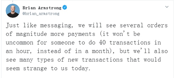 Brian Armstrong, director ejecutivo del intercambio de criptomonedas Coinbase , conversó recientemente con amigos sobre los cambios potencialmente masivos en los servicios de pago en el futuro. Usando la mensajería instantánea como ejemplo, comparó el potencial de la tecnología para impulsar enormes reducciones de costos en los servicios de pago. Lianwen organiza este punto de vista de la siguiente manera: